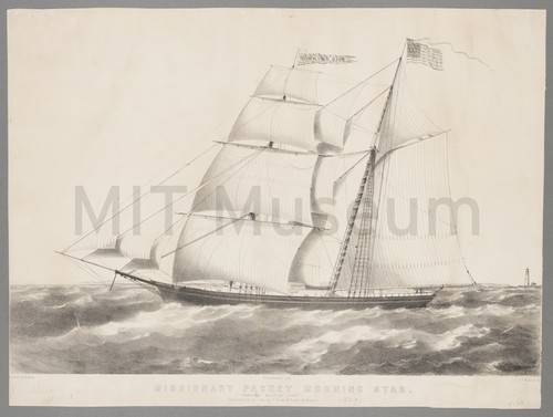 Missionary Packet Morning Star Passing Boston Light A port-broadside view of the missionary packet 'Morning Star' as it passes …