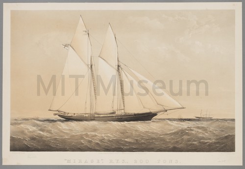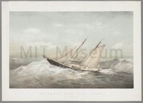 Mirage, R.Y.S., 200 Tons. 5th October 1872. A port-broadside view of the 'Mirage' rocking on waves in the open …