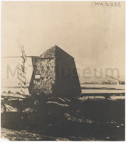 Mill at Fairhaven where whaling irons were ground Monochrome photograph, or possibly print of a photograph, of an old mill …