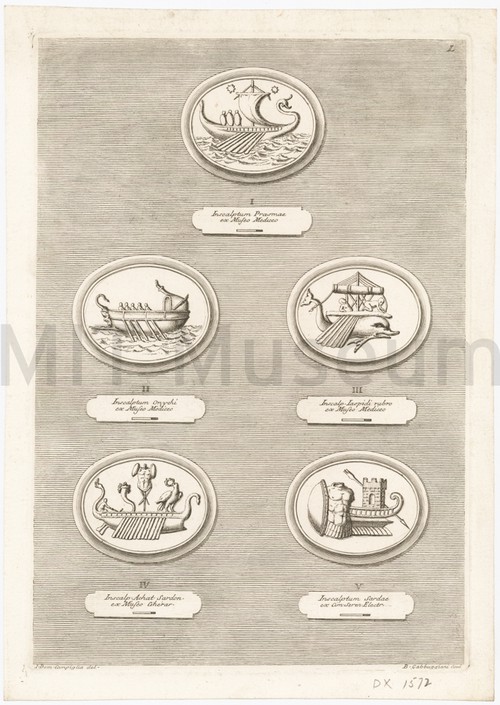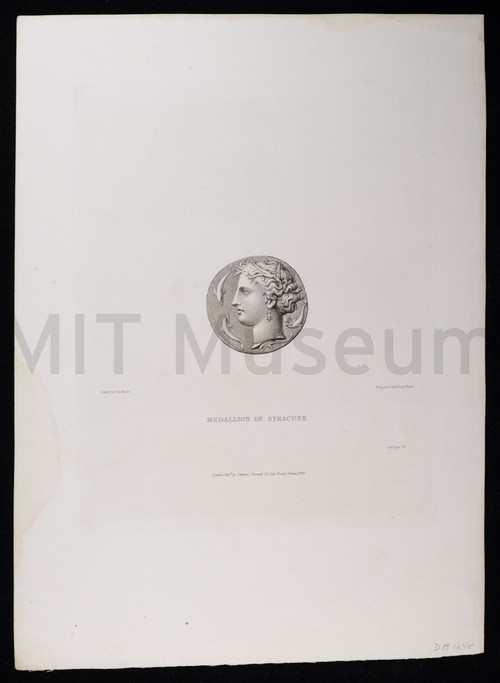 Medallion of Syracuse Uncolored engraving depicting a Syracuse coin with a motif of four dolphins …