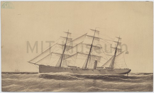 Mid-ocean -- on board the "Alaska" Mounted photograph of a painting of the steamer "Alaska" at sea. Title …