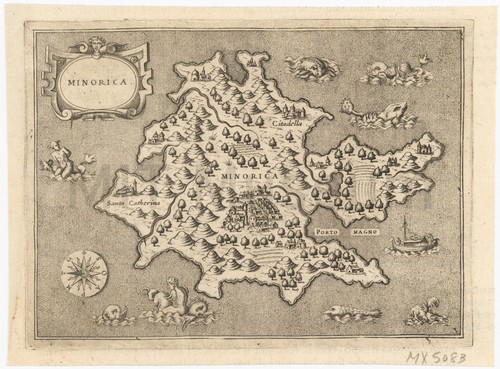 Minorica Map of Minorica with place names in Italian. Sea monsters in the …