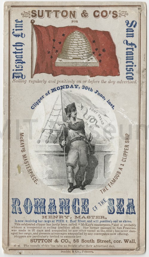 McKay's Masterpiece, the Famous A 1 Clipper Ship "Romance of the Sea" Clipper card for the vessel "Romance of the Sea", departing for San …