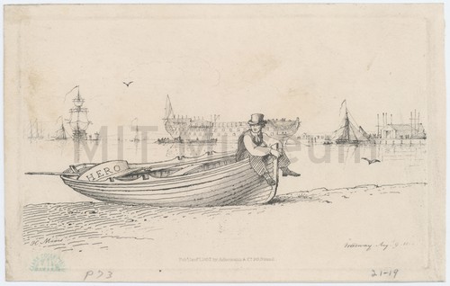 Medway. Augt. 9. 1824. Depiction of a man sitting on the stern of a small rowboat …