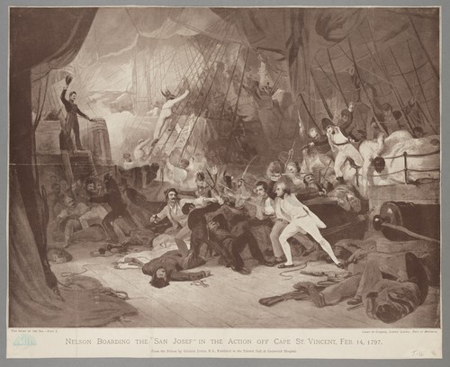 Nelson Boarding the "San Josef" in the Action off Cape St. Vincent, … A print after the painting by George Jones that originally hung in …
