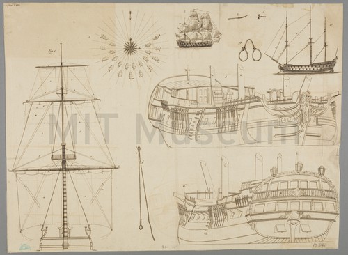 Plan of British East Indiaman with Spar and Sail Draft. 7 Plates … A plan of a British East Indiaman on the lower right side …