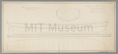 Plans of a Lugger with sliding keels built by Mr. Wm. Wood … Original draft of three figures drawn in red and black ink. Includes …