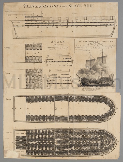 Plan and Sections of a Slave Ship Large-format broadside illustration from Carl Bernhard Wadstrom's An essay on colonization, partic���_ularly …