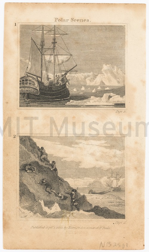 Polar Scenes. 36 views including two whaling scenes. Monochrome engraving from a series of Polar Scenes. With multiple scenes. Top, …