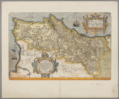 Portugalliae qu�_ olim Lusitania, novissima & exactissima descriptio, Auctore Vernando Alvaro Secco Hand-colored copperplate engraving of "a very new and exact description of Portugal, …