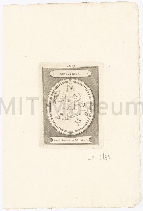 Plate XCVI. Mercurius Uncolored engraving, labeled (plate) XCVI, depicting a stone carved with an image …