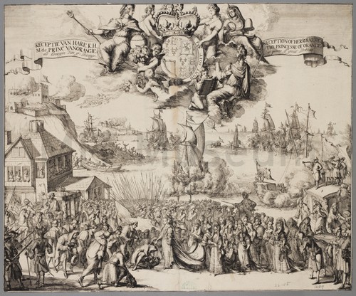 Receptie Van Hare K.H.M. de Pinc: Van Orangie als koningin Van gr: … A trimmed broadside commemorating the reception of Mary II, Princess of Orange …