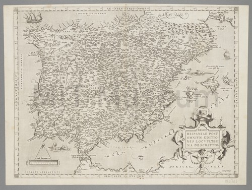 Regni Hispaniae post omnium editiones locupletissima descriptio A map of Spain from the Latin, 1570 edition of Theatrum Orbis …