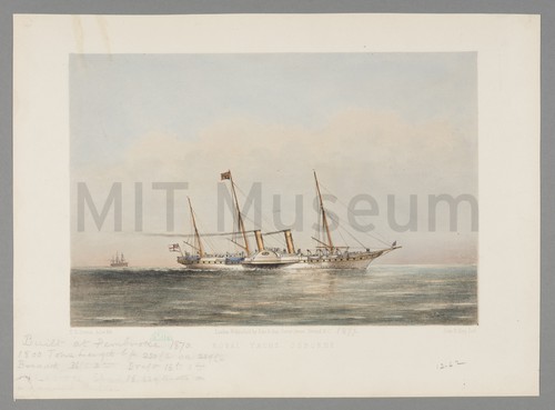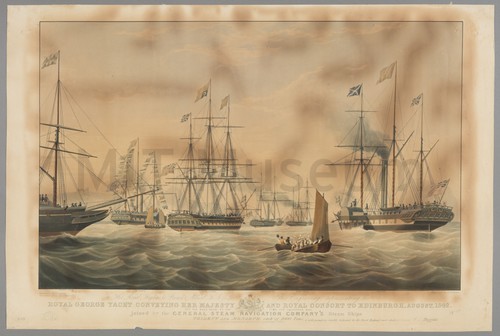 Royal George Yacht Conveying Her Majesty and Royal Consort to Edinburgh, August, … Colored aquating and etching published February 1, 1843 depicting Royal Yacht Squadron …