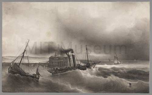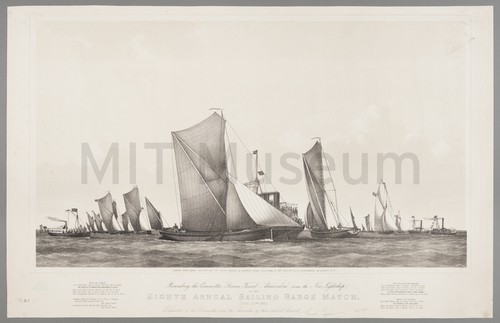 Rounding the Committee Steam-Vessel "Alexandria" in the Eighth Annual Sailing Barge Match black and white lithograph depicting the middle of the eighth annual Sailing …
