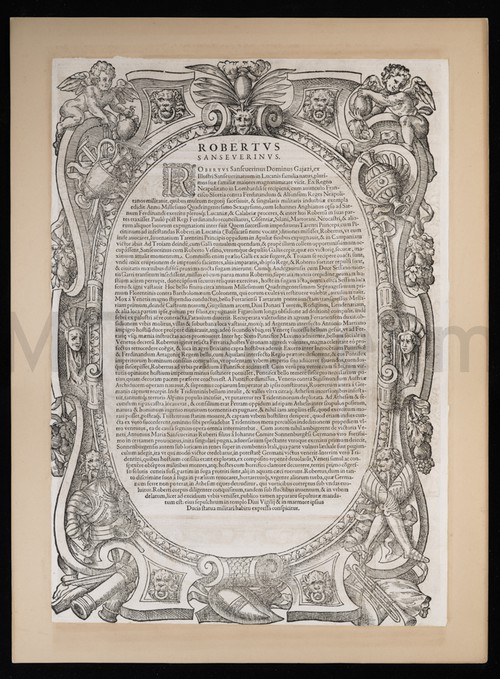 Robertus Sanseverinus Engraved portrait of Robertus Sanseverinus Dominus Gajazi in armor, in an elaborate …