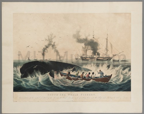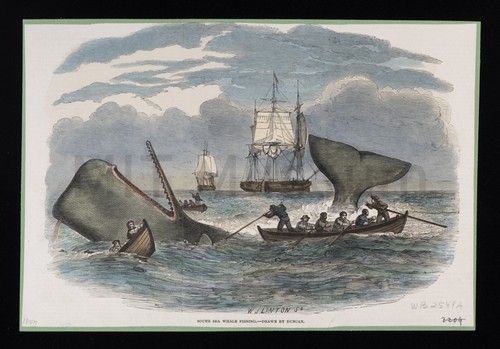 South Sea Whale Fishery. A Representation of Boats Attacking a Sperm Whale … A sperm whale flounders in agony as it is being harpooned by …
