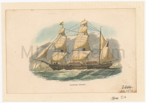 South Sea Whale Fishery. A Representation of Ships Amelia Wilson and Castor … A whaling scene depicting two vessles, Amelia Wilson and Castor. Some narration …