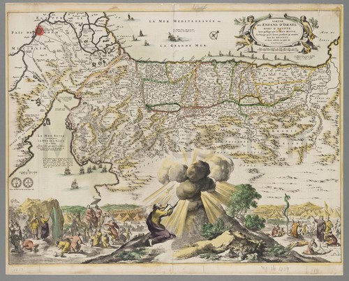 Sortie des Enfans D'Israel Hors d'Egypte etc. Hand-colored intaglio map depicting the "Departure of the Children of Israel for …