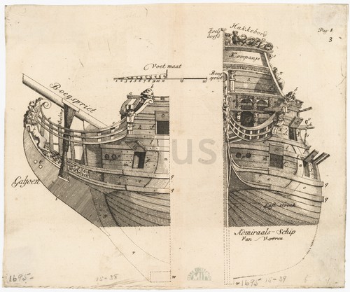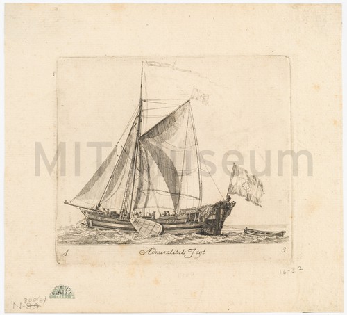 Admiraliteits Jagt Etching depicting a three-fourths stern view of an Admiralty Yacht ("Admiraliteits Jagt") …