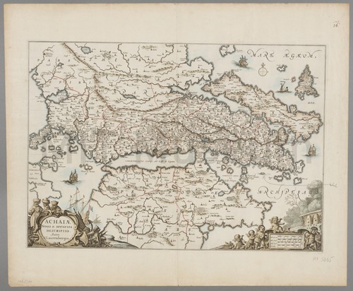 Achaiae Nova & accurata Descriptio Hand-colored map of southern Greece after Johannes W. Lauremberg from Jan Jansson's …
