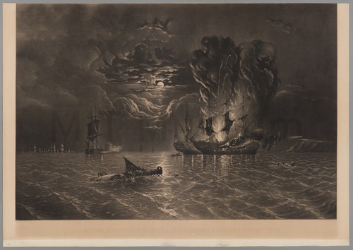 Action Between the Serapis and the Bonhomme Richard Sept. 23rd 1779 Engraving (mezzotint) after a painting by James Hamilton depicting the Battle of …