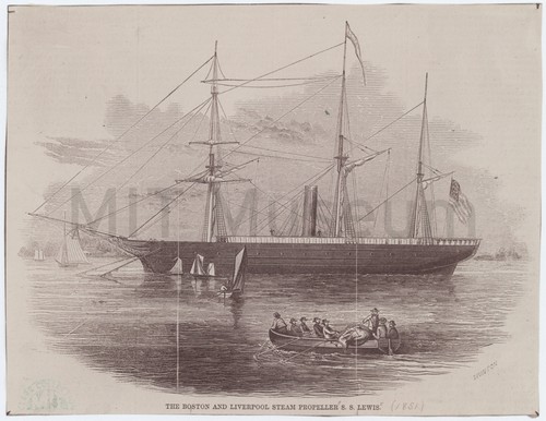The Boston and Liverpool Steam Propeller "S S Lewis" Photograph of a woodcut from a periodical, depicting the steamship "SS Lewis" …