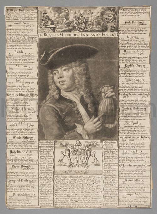 The Bubler's Mirrour, or England's Folley. Monochrome satirical print concerning the South Sea Bubble of 1720, one of …