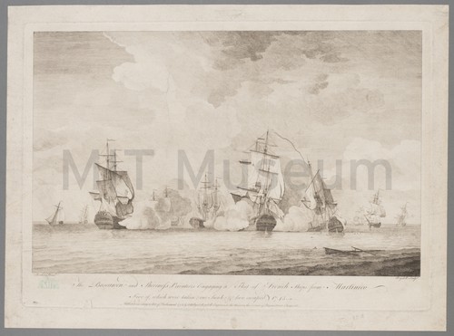 The Boscawen and Sheerness Privateers Engaging a Fleet of French Ships from … A print depicting the engagement between the British privateers 'Boscawen' and the …