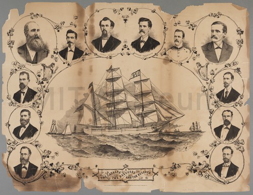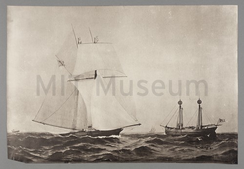 The Cambria passing Sandy Hook Lightship, Winner of Ocean Race from Daunts … A print depicting the famous race across the Atlantic Ocean from Ireland …
