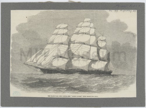 The Black Ball Line Clipper-Ship James Baines, with Troops for India Illustration from The Illustrated London News, Oct. 31 1857.