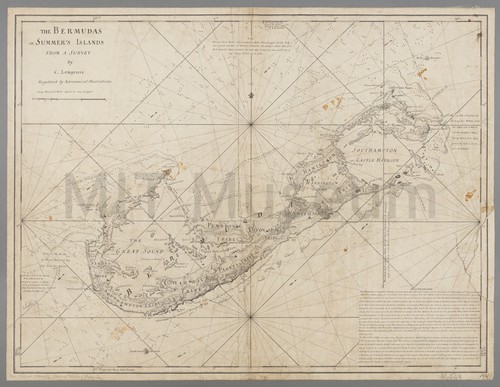 The Bermudas or Summer's Islands Hand-drawn chart depicting the area around Bermuda. Lines of longitude and latitude …