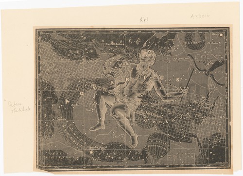 The Heavens Illustrated, Set of Three Monochrome engraving of a star chart, with constellations illustrated as figures. Aquarius …