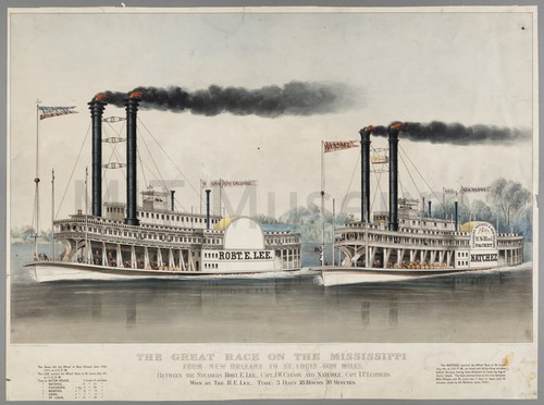 The Great Race on the Mississippi Lithograph commemorating a race from New Orleans to St. Louis between two …