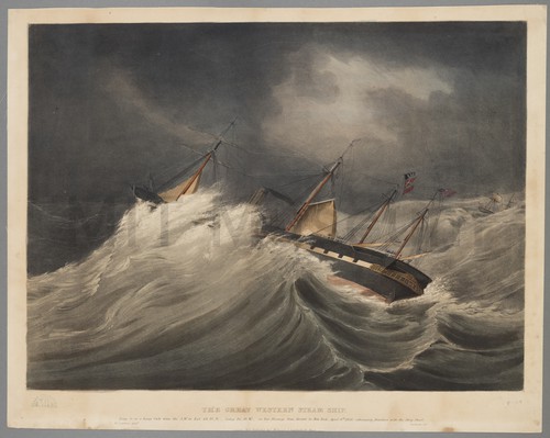 The Great Western Steam Ship lying to in a heavy Gale with … The British paddle steamer, the 'Great Western,' labors under steam and sail …