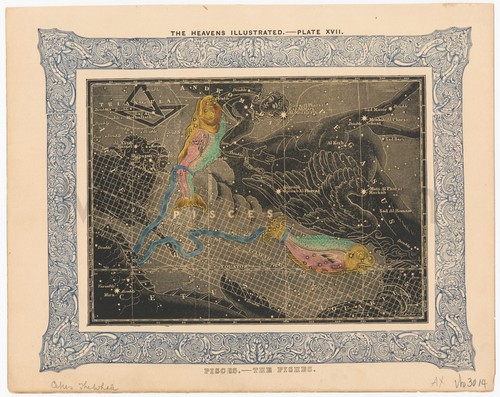 The Heavens Illustrated. Plate XVII - Pisces Printed star chart with a printed blue ink border and central constellation …