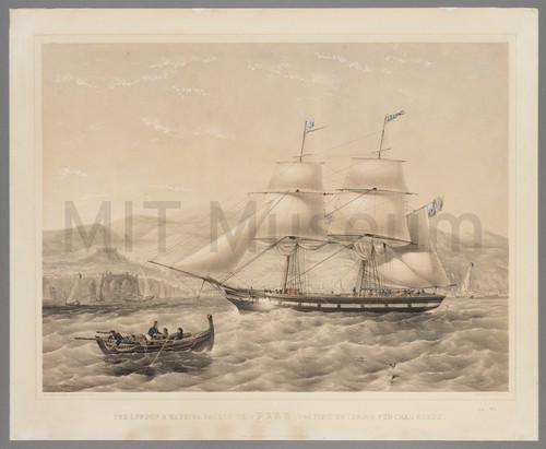 The London & Meira Packet Brig Dart (242 Tons) Entering Funchal Roads A tinted lithograph of the packet brig 'Dart' approaching the town of …
