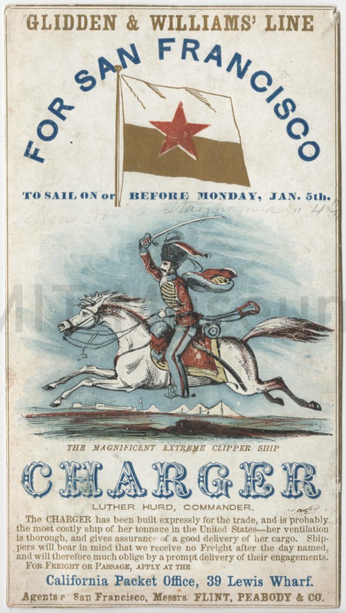 The Magnificent Extreme Clipper Ship "Charger" Clipper card for the ship "Charger", departing for San Francisco "on or …