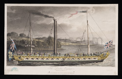The London Engineer (Steam Yacht) Colored aquatint of the London Engineer, a packet boat that began her …