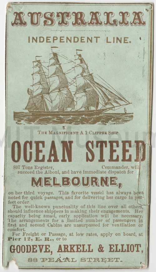 The Magnificent A 1 Clipper Ship "Ocean Steed" Clipper card for the ship "Ocean Steed", bound for Melbourne, Australia. No …
