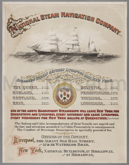 The National Steam Navigation Company Shipping Notice, with portrait of the Company's … A shipping notice advertising the weekly voyages of the iron steamships of …
