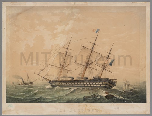 The Monarch with the Remains of George Peabody on Board A vignette of the HMS 'Monarch' in Portland, Maine carrying the body …