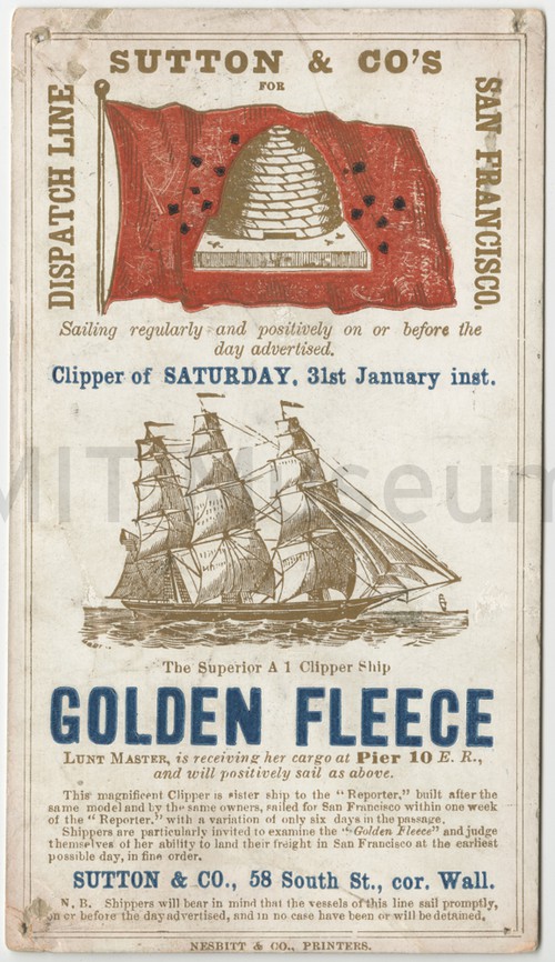 The Superior A 1 Clipper Ship "Golden Fleece" Clipper card for the ship "Golden Fleece", sailing for San Francisco on …