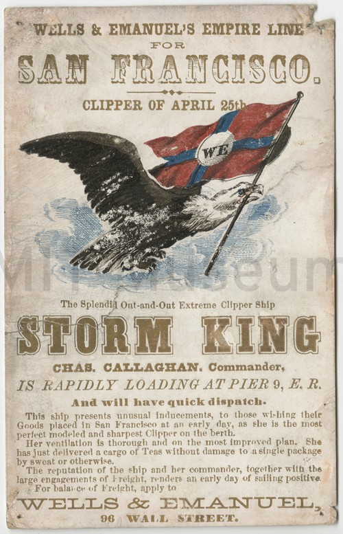 The Splendid Out-and-Out Extreme Clipper Ship Clipper card for the ship "Storm King", departing for San Francisco on …