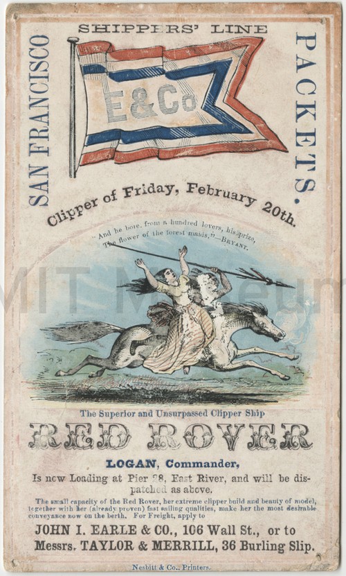 The Superior and Unsurpassed Clipper Ship "Red Rover" Clipper card for the vessel "Red Rover", departing for San Francisco on …