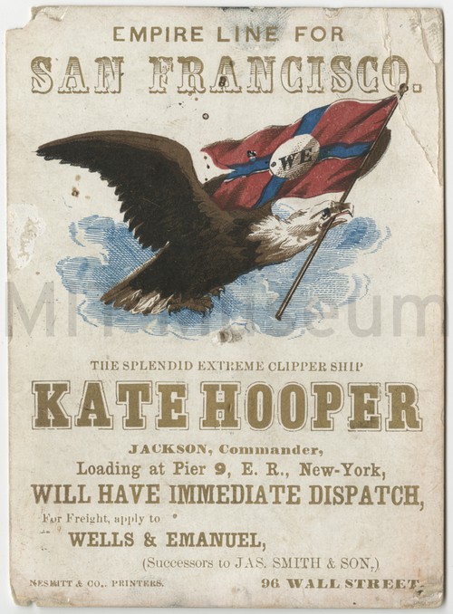 The Splendid Extreme Clipper Ship "Kate Hooper" Clipper card for the ship "Kate Hooper" departing for San Francisco under …