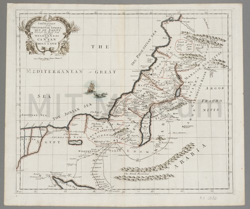The Travels of the Children of Aegypt through the Red Sea and … Hand-colored map of the route of passage from Egypt to the Promised …
