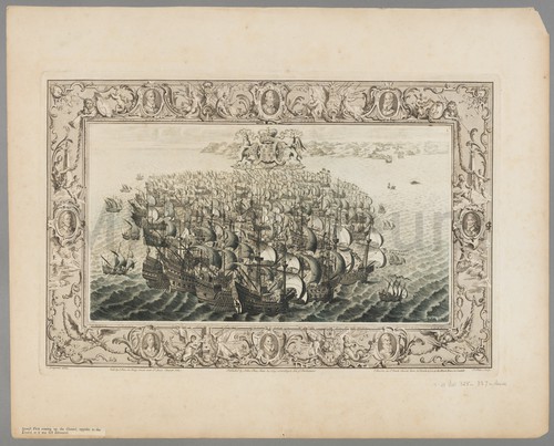 The Tapestry Hangings of the House of Lords: Representing the Several Engagements … Colored. Reproduction of a tapestry in a cycle depicting the defeat of …