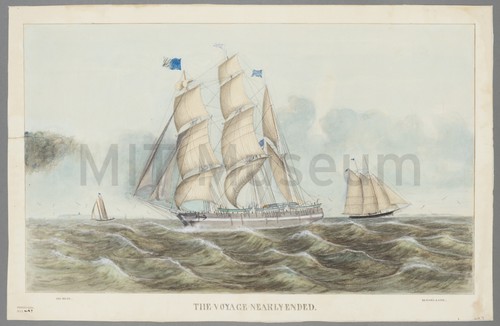 The Voyage Nearly Ended Unsigned original watercolor of three-quarter bow and port-side view of a whaleship …
