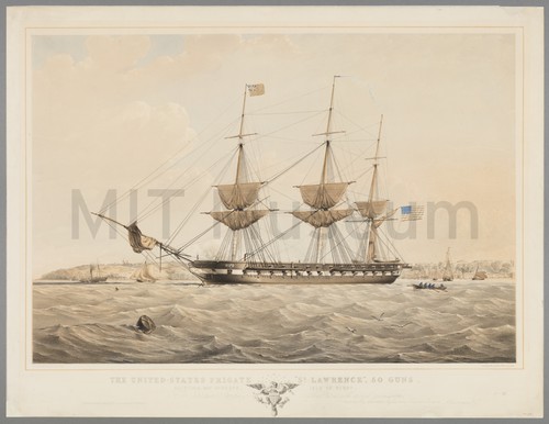 The United States Frigate St. Lawrence, 50 Guns. Saluting off Osborne, Isle … A port-broadside view of the American frigate 'St. Lawrence' performing a ship's …